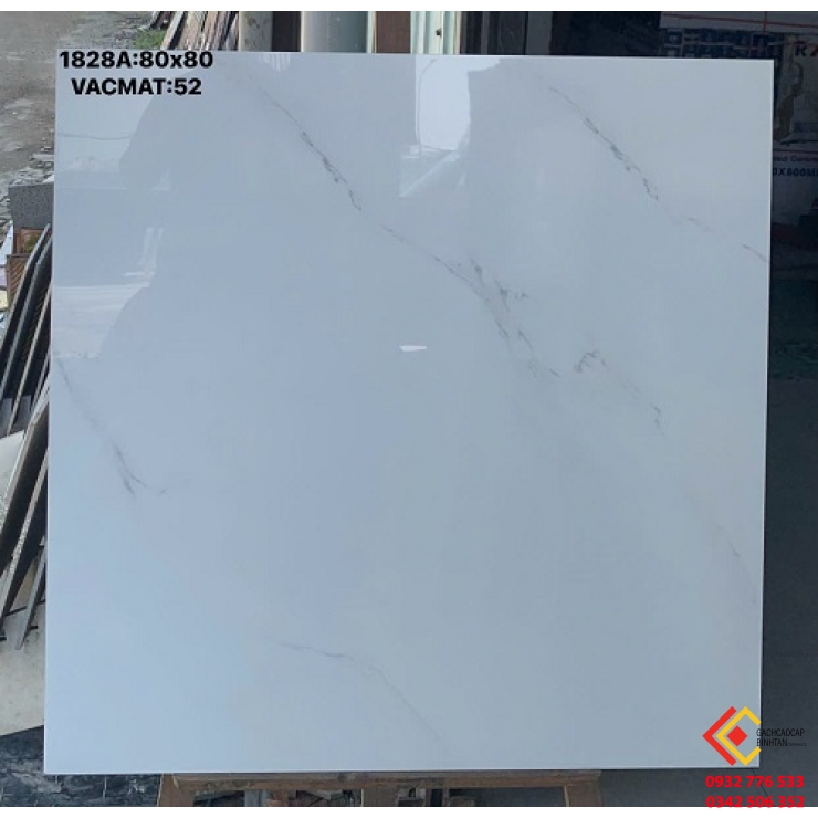 Gạch 80x80 đá bóng kiếng màu trắng vân xám Đồng Nai