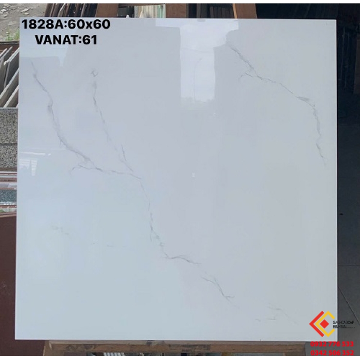 Gạch lát nền 60x60 đá bóng kiếng màu trắng sang trọng