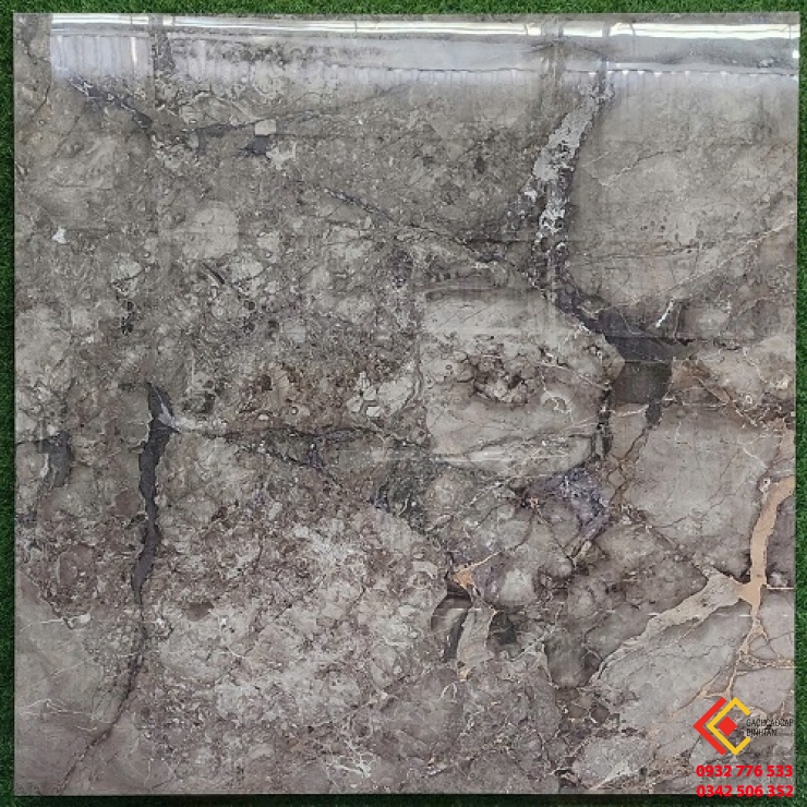 Màu nâu cẩm thạch mang trong mình hơi thở của đất, của gỗ, của đá - ấm áp mà vẫn sang. Trên nền nâu trầm là những đường vân cẩm thạch trắng sữa uốn lượn nhẹ như sương khói, tạo nên cảm giác mềm mại và có chiều sâu. Mỗi viên gạch như một mảng đá tự nhiên được cắt ra, mang nét mộc mạc , không viên nào trùng lặp.