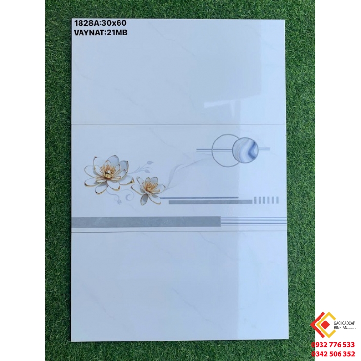 Gạch Ốp Tường 30x60 Vân Trắng Trơn Họa Tiết Bông Hoa Đơn Giản